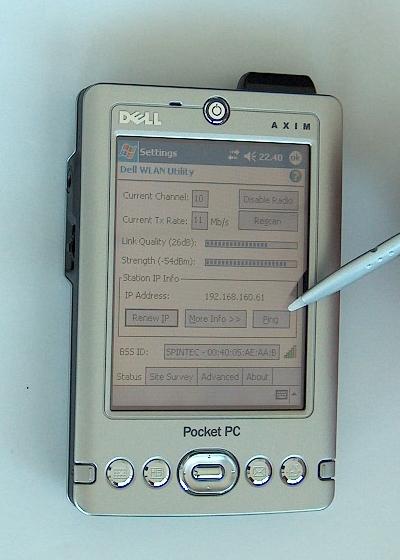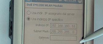 ed impostare seguenti valori Indirizzo IP: 192.168.160.61 (confermare con tasto Tab) Nel caso ci fossero piu' PDA assegnare a ciascuno un indirizzo univoco incrementando il valore della ultima cifra dell'indirizzo Es.:192.168.160.62, 192.168.160.63 .... etc. SubnetMask: 255.255.255.0 (confermare con tasto Tab) Confermare il resto con ENTER |
